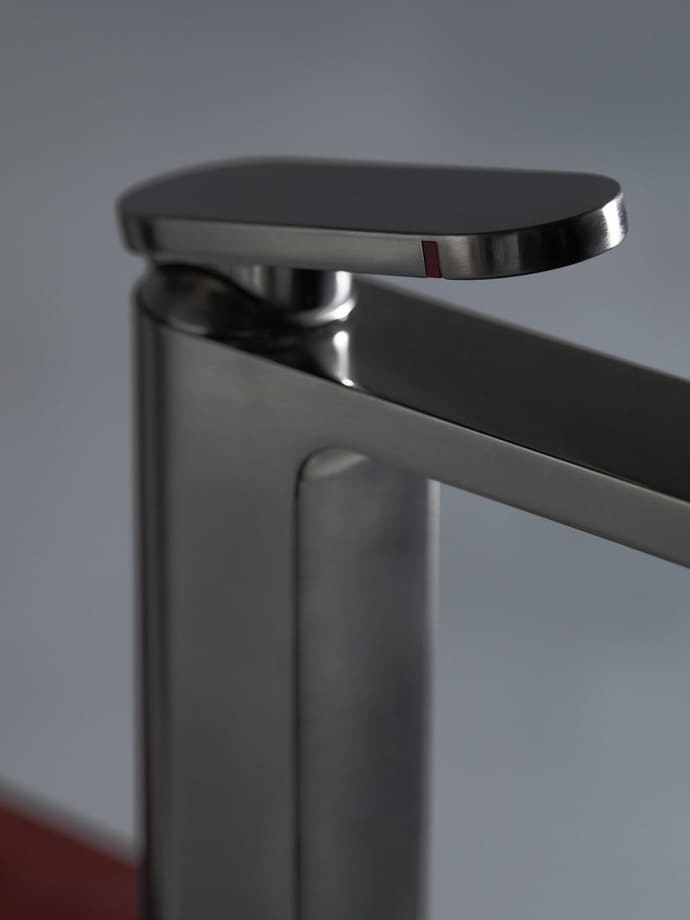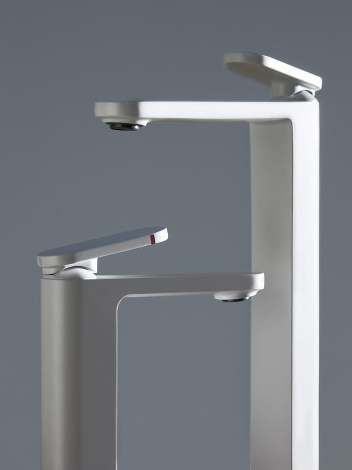 Colecția se remarcă prin suprafața frontală plată și corpul semi-circular, un contrast care conferă bateriei o identitate distinctă. Maneta suspendată, care pare aproape lipsită de greutate deasupra corpului, este rezultatul unui proces complex de perfecționare tehnică, care reduce volumul tradițional, menținând în același timp funcționalitatea impecabilă.