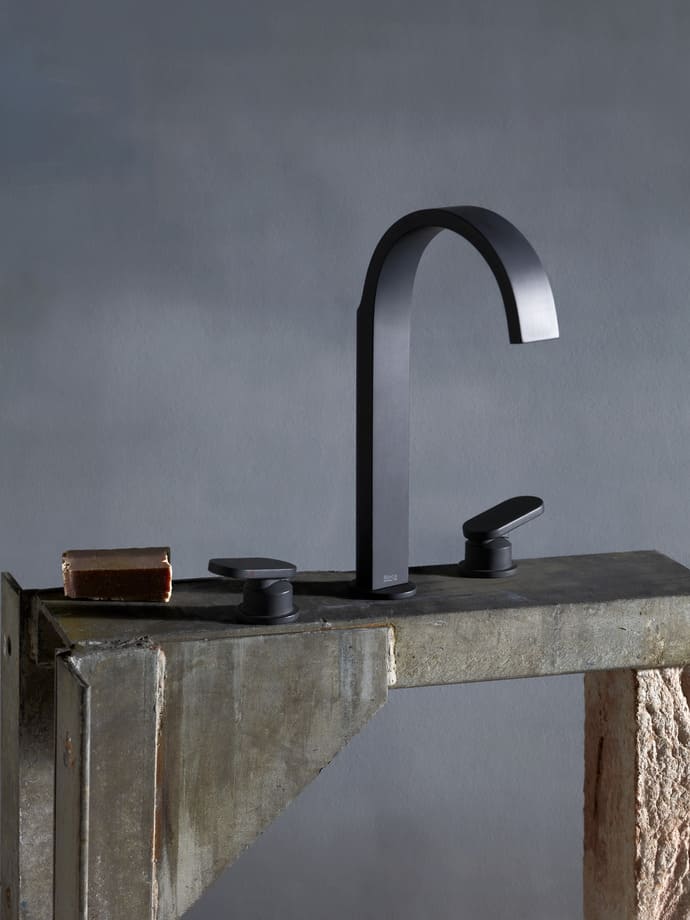 Suprafața frontală plană și corpul semicircular al modelului Kay creează un contrast geometric distinct, aducând în echilibru precizia și delicatețea. Pipa dreaptă, atent dimensionată, asigură un debit uniform și controlat al apei, în timp ce corpul sculptat creează tranziții fluide, care se simt naturale la atingere. Realizat din alamă turnată, oferă atât rezistență, cât și o prezență sculpturală, consolidându-i caracterul rafinat, dar robust. Disponibilă în șase finisaje și cu tehnologia Cold Start, colecția Kay se adaptează cu ușurință oricărui stil arhitectural contemporan.