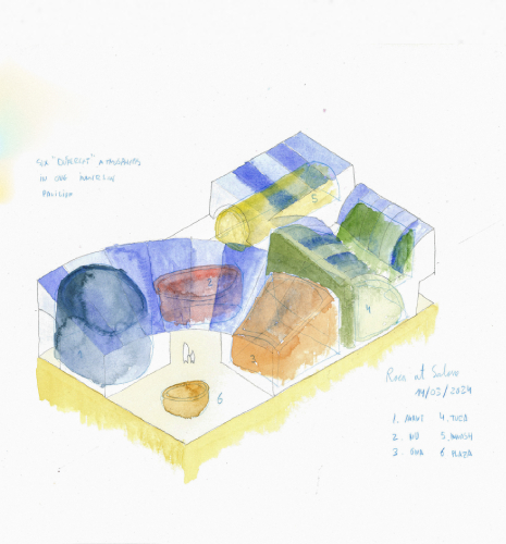 Amplasat în cadrul aglomeratei Expoziții Internaționale de Băi, pavilionul Roca iese în evidență cu un de-sign geometric care amintește de Marea Mediterană și este strâns legat de arhitectura Barcelonei. Pro-iectat de firma de arhitectură Mesura din Barcelona, "Perspective mediteraneene" este un design intro-vertit care se deschide printr-o piață centrală, invitând vizitatorii să intre și să descopere interiorul.