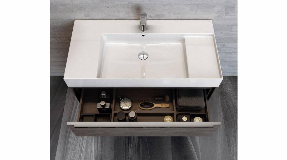 De aceea, mobilierul Inspira a fost proiectat pentru a oferi o gamă vastă de soluții. Unitățile de bază, disponibile în trei dimensiuni, 600, 800 și 1000 mm, și trei finisaje, Alb lucios, Stejar urban și Stejar urban oglindă întunecată, pot fi completate cu unități coloană care oferă o capacitate de depozitate mare, în vederea asigurării faptului că totul își are locul stabilit.
