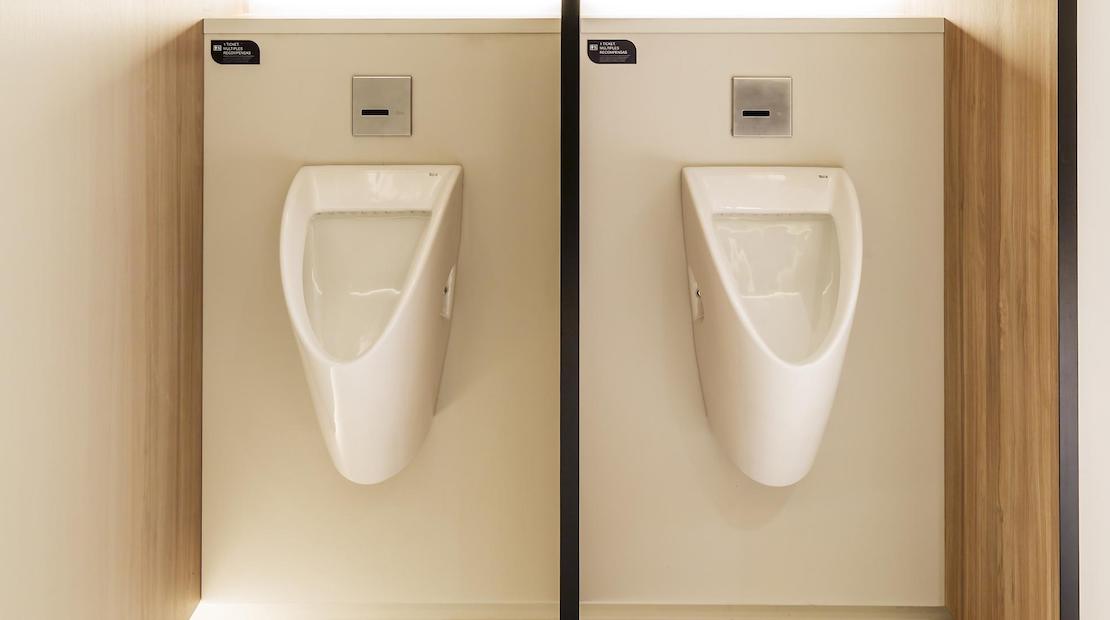 Pe lângă produsele fără atingere Roca, ONE HUNDRED restrooms și-a pus încrederea, de asemenea, în marca noastră pentru montarea pisoarelor Chic, a lavoarelor pe blat Inspira Round, realizate din Fineceramic®, și în toaletele suspendate Inspira Round cu tehnologia Rimless.