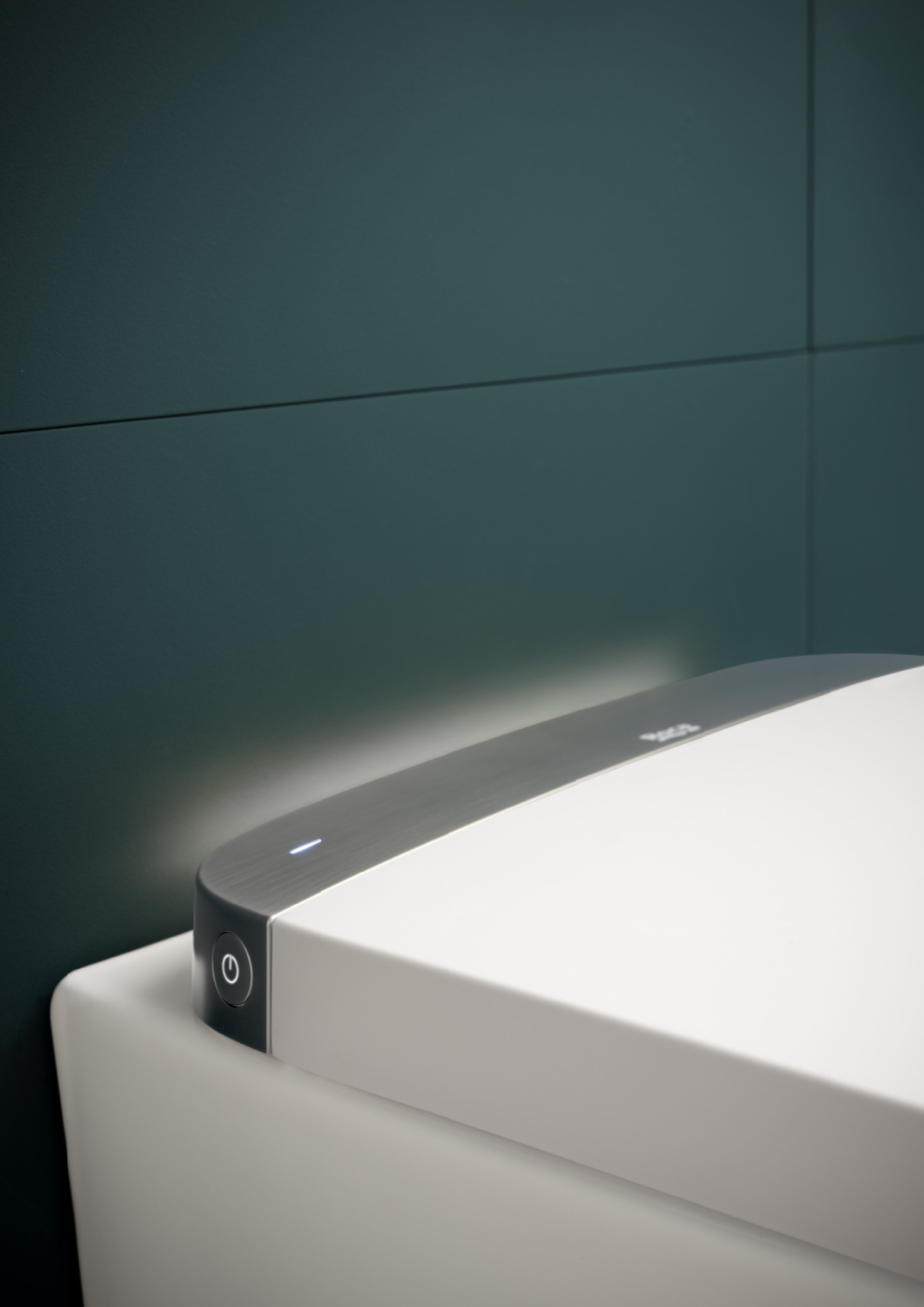 In-Wash® Vorea emană eleganță prin curbele sale armonioase și liniile precise, aducând o perspectivă nouă în spațiul din baie. Partea din spate a capacului, cu textura sa unică, culoarea și finisajul PVD oțel inoxidabil periat conferă un plus de rafinament designului general.