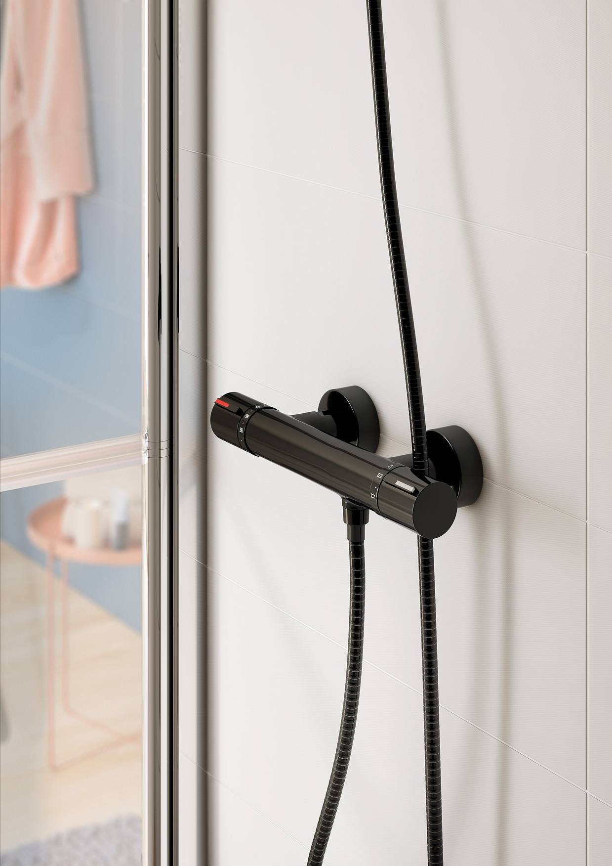 Baterie cadă sau duș încastrată, cu termostat. Se comandă împreună cu Rocabox A525869403.