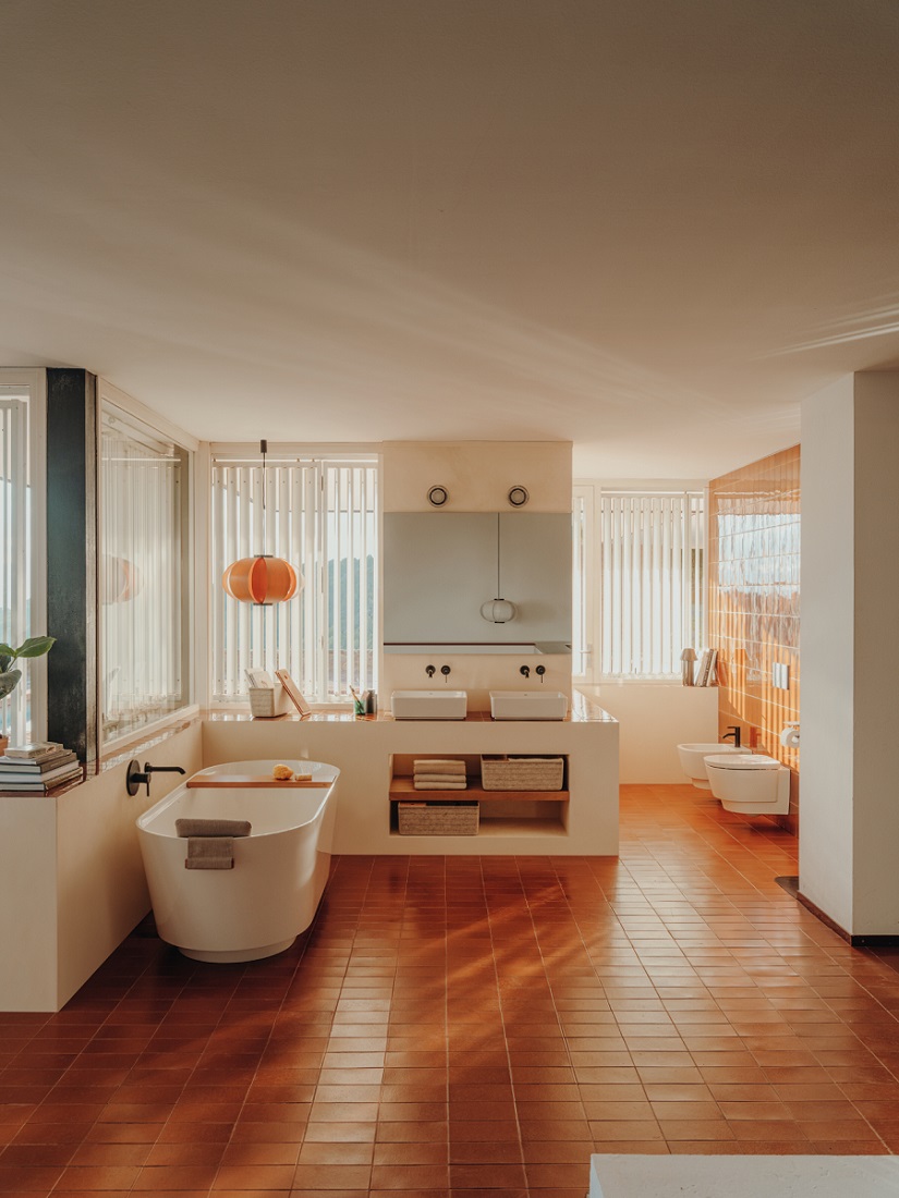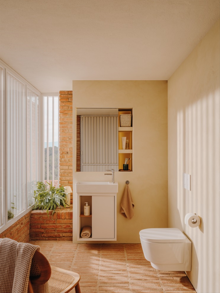 Tura se adaptează perfect la mediul înconjurător, fie că este vorba de un apartament modern sau de o casă de vacanță la malul mării. Stilul său atemporal, formele arhitecturale combinate cu tonuri calde și texturi deschid potențialul pentru spații de baie inspirate care transcend cotidianul și captivează imaginația.