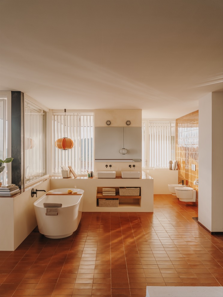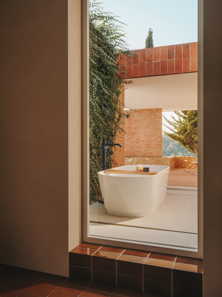 Cada Tura este voluminoasă, dar ușoară, iar designul său ergonomic este gândit pentru odihnă și relaxare. Forma sa unică este inspirată de un sistem arhitectural Cantilever, dând impresia de cadă care plutește în spațiu. Este fabricată din Stonex® , un material inovator care permite obținerea unor forme precise, inclusiv margini subțiri, liniare, care au fost proiectate cu pricepere pentru a susține elegant suportul din lemn.