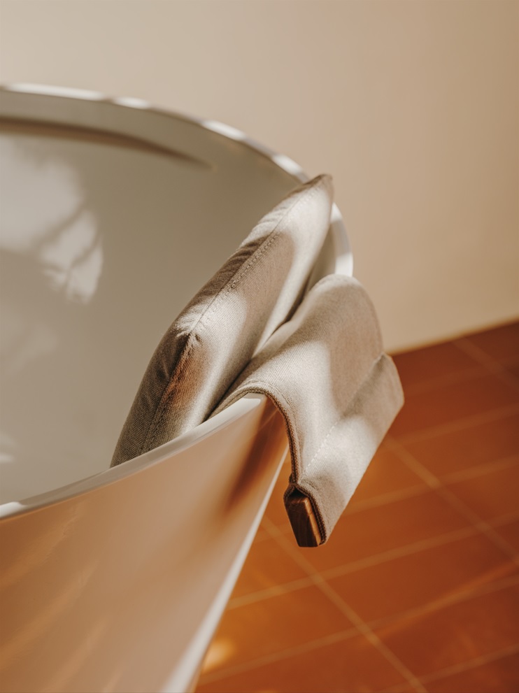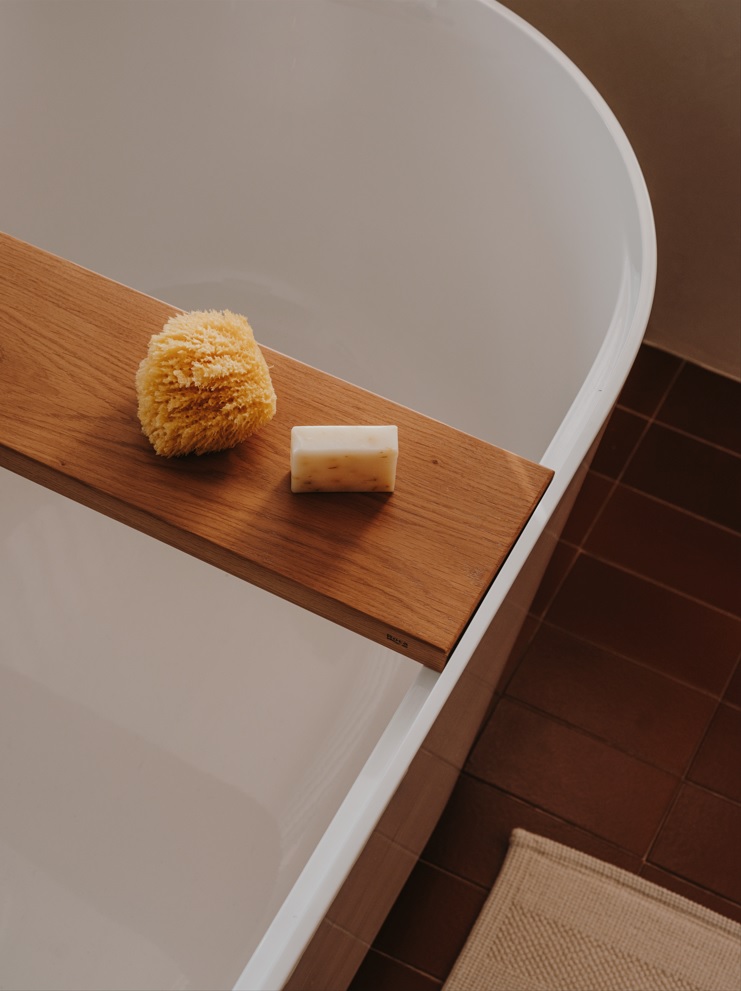 Suportul din lemn certificat FSC® este proiectat să se potrivească pe marginea căzii de baie într-un mod foarte simplu, dar perfect încastrat. O piesă funcțională și estetică care completează designul căzii de baie, adăugând în același timp un element natural în spațiul băii.